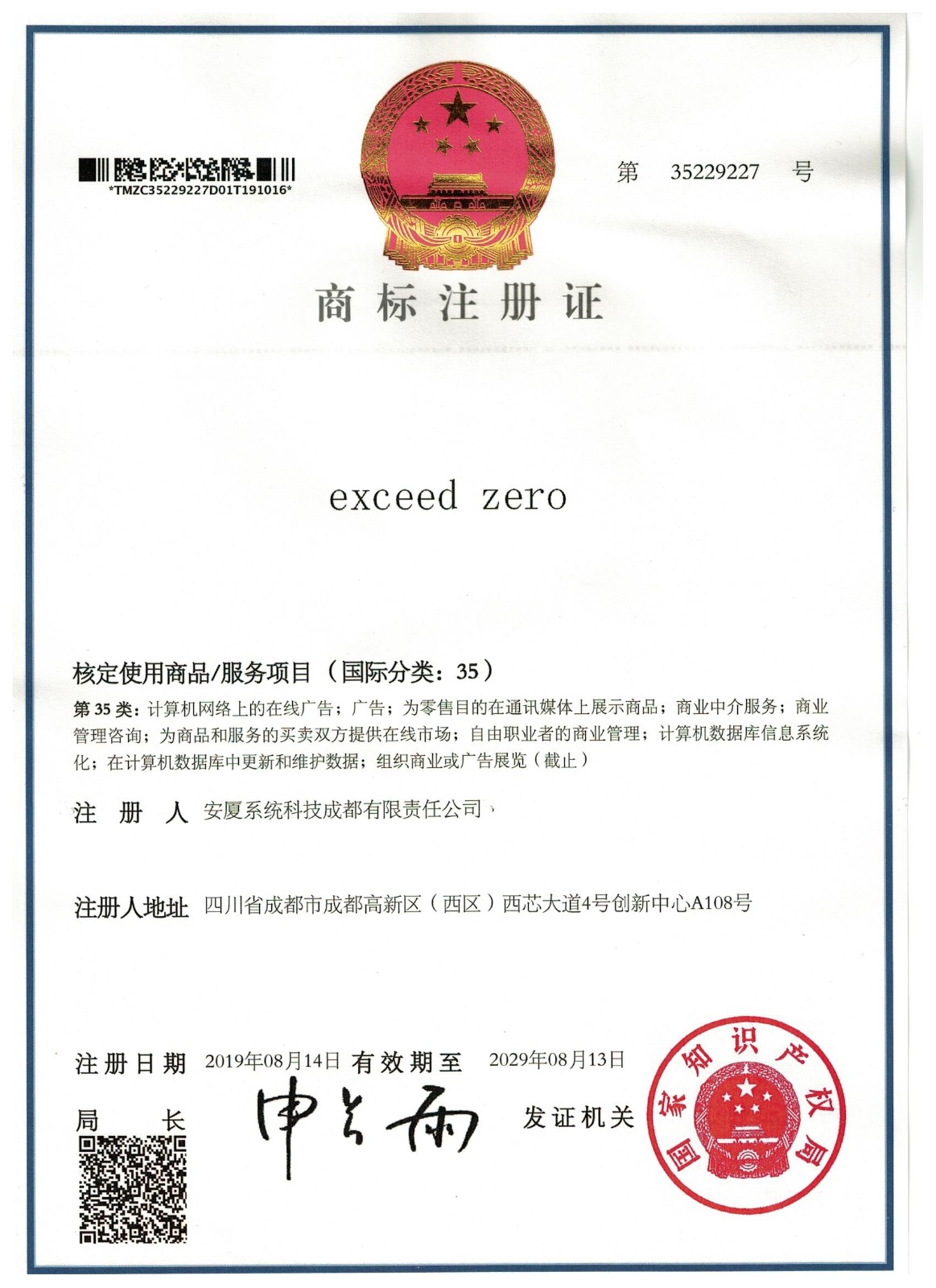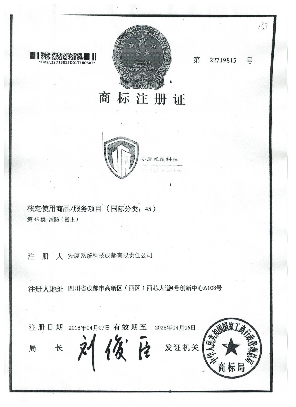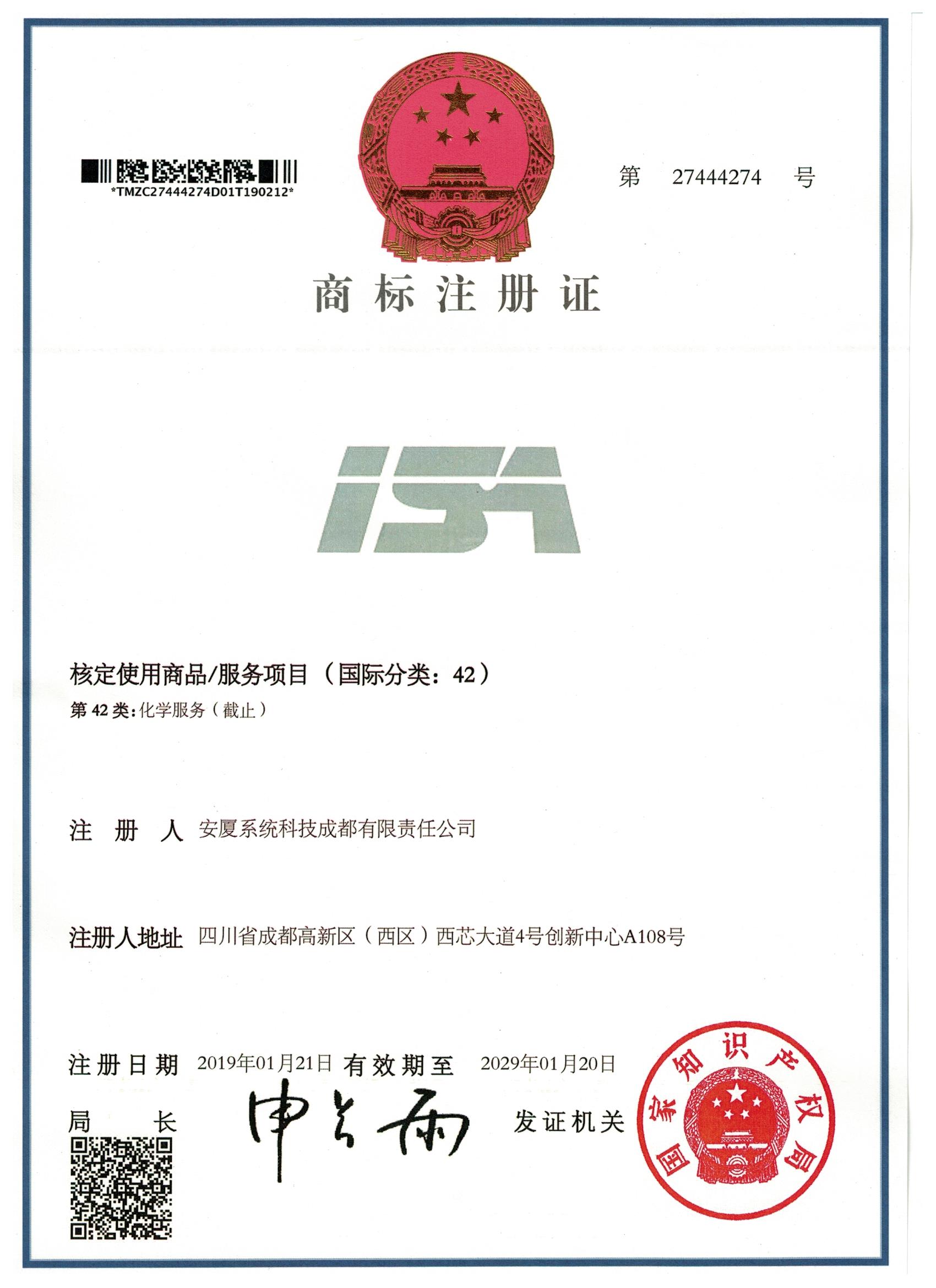 • 商標(biāo)注冊(cè)證