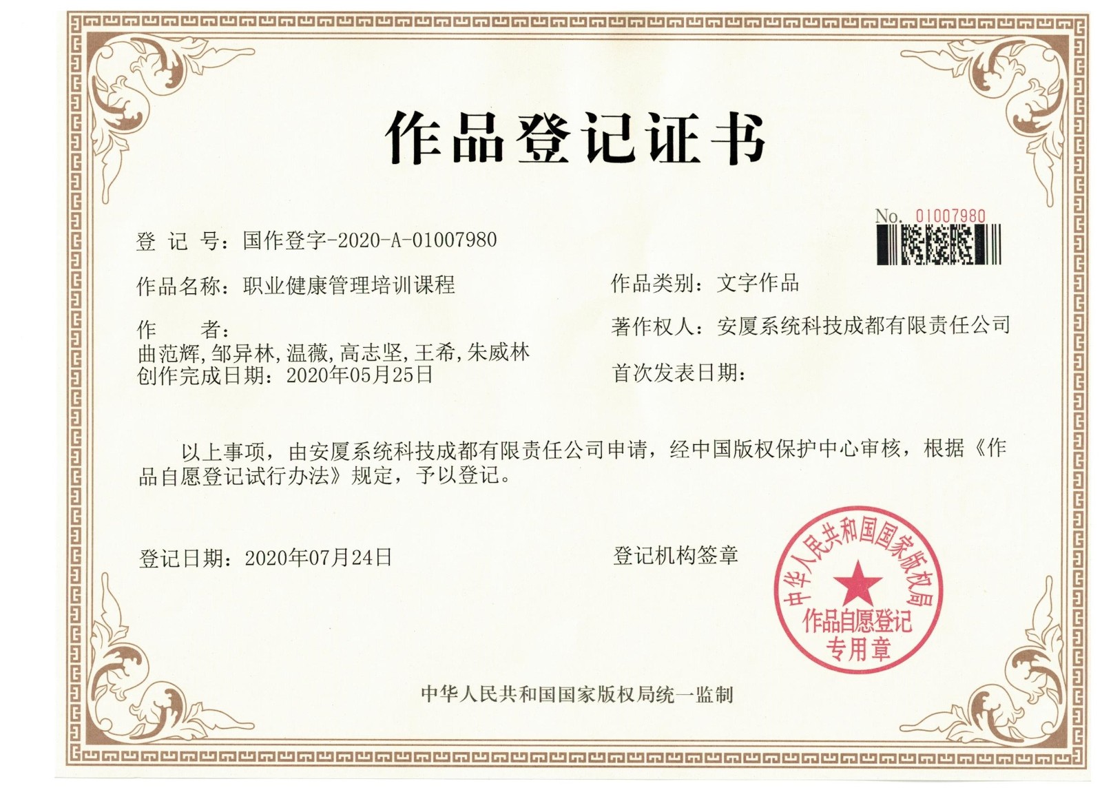 • 作品登記證書(shū)